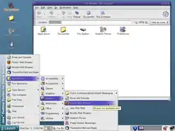 In 2001, Sun issued a preview release of the open-source desktop environment GNOME 1.4, based on the GTK+ toolkit, for Solaris 8.[43] Solaris 9 8/03 introduced GNOME 2.0 as an alternative to CDE. Solaris 10 includes Sun's Java Desktop System (JDS), which is based on GNOME and comes with a large set of applications, including StarOffice, Sun's office suite. Sun describes JDS as a "major component" of Solaris 10.[44] The Java Desktop System is not included in Solaris 11 which instead ships with a stock version of GNOME.[45] Likewise, CDE applications are no longer included in Solaris 11, but many libraries remain for binary backwards compatibility.
