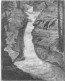 There are waterfalls called Solomon's Falls on Solomon Creek. They were called a "beautiful cascade" by Philadelphia's Portfolio in 1809, although a 1909 book stated that the waterfalls were no longer "picturesque" or "delightful".[1][14] The falls were between 50 feet (15 m) and 60 feet (18 m).[1]