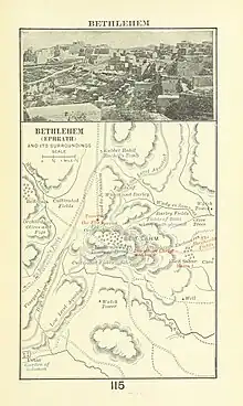 Map of ancient Bethlehem. Jerome's study was underneath the Church of the Nativity, marked on this map as "Inn where Christ was born."