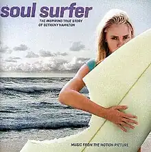 It also had two original recordings written for the film: an original song "Runaway" by Mat Kearney and a cover of Katy Perry's 2010 hit single "Firework" by American Idol finalist Chris Sligh.[2] Mat Kearney claimed that he met Bethany Hamilton (whom the film is based) in Hawaii, before the accident and impressed with her and when the film's biopic was under production, Keaney was offered to write a song from the production's music staff, thereby leading his track "Runaway" being made into the final soundtrack.[3] The musical choices were supervised by Hamilton's family.[4]