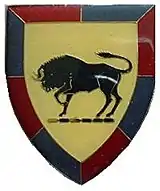 The wildebeest as the College’s symbol had been adopted around 1924. A shoulder flash was developed around 1963 displaying the wildebeest in a roundel of blue and maroon. The Wildebeest concept had originated from a trophy given to the Military School from the Mounted Rifles.