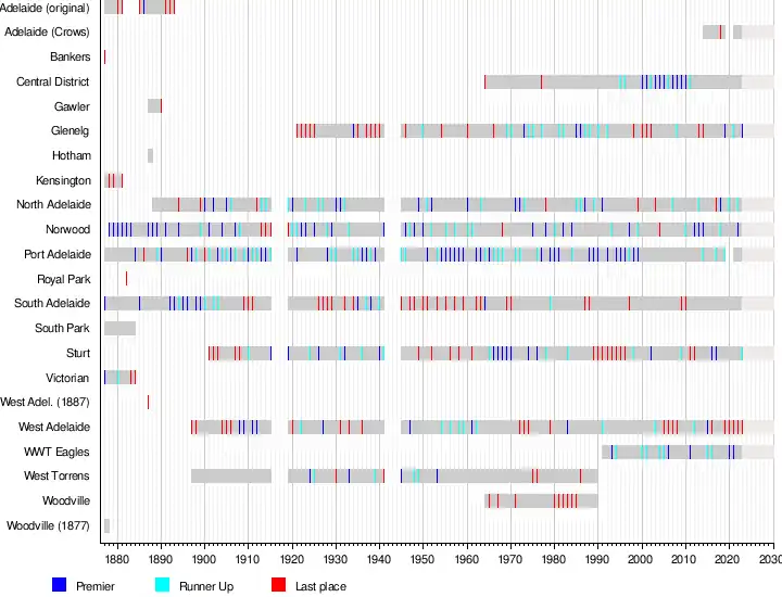 See also List of SANFL Premiers and List of SANFL wooden spoons