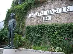One of the bastion's current uses is to house the Gibraltar College which sits on top of the bastion.[10] A statue of Horatio Nelson stands below the South Bastion's wall, erected to commemorate the 200th anniversary of his victory and death in the Battle of Trafalgar (21 October 1805). The statue was designed by John Doubleday and shows Nelson as he was when he last arrived at Gibraltar. The sculpture was commissioned by the Government of Gibraltar and is cast in part from copper taken from HMS Victory which visited the harbour on a number of occasions.[11]