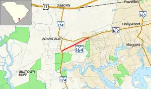 South Carolina Highway 164 (SC 164) is a 2.500-mile-long (4.023 km) state highway in the U.S. state of South Carolina. Most of the highway travels through Hollywood and acts as a shortcut between Hollywood and Edisto Beach.