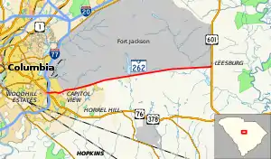South Carolina Highway 262 (SC 262) is a 14.750-mile (23.738 km) primary state highway in the U.S. state of South Carolina. It serves primarily as the southern border of Fort Jackson.