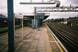 The station opened on 3 July 1933 with access from both sides of the railway via a footbridge to the single island platform serving only the Euston-Watford DC line; this footbridge (which started at the bottom of the embankment) was later replaced by a pedestrian tunnel, cutting out a long climb for passengers entering the station. The station designed by the architect William Henry Hamlyn[8] was built in a more modern "concrete and glass" style construction including a "streamlined" waiting room rather than the brick and woodwork LNWR stations elsewhere on the DC line.