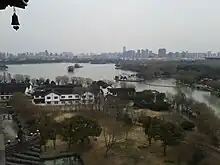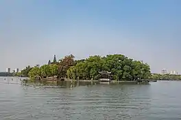 South Lake (Chinese: 南湖; pinyin: Nán Hú; Wu: Noe平Wu平) is a lake in the South of Jiaxing, Zhejiang, China, and covers an area of 0.54 km2. It is also known as "Mandarin Duck Lake" due to its shape.[1]