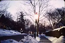 The village is one of only a few in New Jersey to retain gas light street illumination (others include Riverton, Palmyra, Trenton Mill Hill neighborhood, and Glen Ridge). The gaslight, together with the distinctive Village Hall, has long been the symbol of South Orange. Many of the major roads in town do have modern mercury vapor streetlights (built into gaslight frames), but most of the residential sections of the town are still gas-lit. A proposal to replace all the gaslights in town with electric streetlights was explored as both a cost-saving and security measure during the 1970s. And although the changeover to electric was rejected at the time, the light output of the lamps was increased to provide more adequate lighting. There have been claims that South Orange has more operating gaslights than any other community in the United States. In 2010, the village initiated a project that would automatically shut the lamps in the morning and light them at dusk, as part of an effort to save as much as $400,000 each year in energy costs for the 1,438 gas lamps across the village.[50] As of 2019, these devices have not been installed.