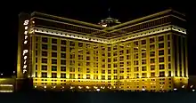 The hotel stands at 25 stories,[16] and includes 2,163 rooms.[37] It originally opened with 652 rooms.[65] The second tower, finished in 2006, brought the total to 1,333.[37] As of 2007, approximately 30 percent of hotel occupancy was related to conventions held at the resort, necessitating the need for more rooms.[36] The third tower, with 830 rooms, was completed in July 2008, bringing the room total to 2,163. The South Point became the largest locals' hotel in Las Vegas.[37][66]