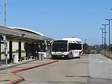 SamTrans bus routes 122, and 130 stop in the busway on the west side of the station. Route ECR stops on El Camino Real west of the station. Route 35 stops at the corner of Mission Road and Evergreen Drive on the east side of the station.[3]