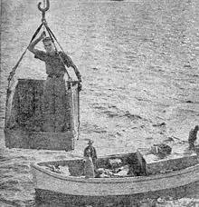 Also at the premises are the remains of a 13 metres (43 ft) above sea level jetty, the third to be constructed.[4] The first jetty was constructed in 1878 during the construction of the lighthouse, and was only 5 metres (16 ft) high. It was destroyed in 1904 and a larger jetty was built. This second jetty was repaired and reconstructed multiple times, in 1913–1915 and 1932.[5] Finally, the third jetty was built in 1959.[11] The shore end of the jetty was demolished in 1986.[2] As of 2008 the jetty still stands, though most of it has rusted and fallen into the sea. A small storehouse in poor shape stands next to the jetty.[4] The storehouse is the oldest building on the island, being constructed in 1879–1880.[5]