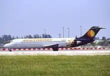 Southeast Airlines was established in 1993 as Sun Jet International and was founded by Tom Kolfenbach.[1] It was a low fare public charter airline in the United States, headquartered in Largo, Florida, operating regular service to various vacation/leisure destinations using eight McDonnell Douglas DC-9-30 and two McDonnell Douglas MD-80 aircraft. It abruptly ceased operations on November 30, 2004.[2] The airline was featured on the reality TV series The Simple Life, which Southeast executives hoped would give the carrier some exposure.[3] The airline's jets featured the "Sun King" logo previously used by the original National Airlines which appeared on the tails of its aircraft.[4]