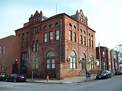 Southern District Police Station is a historic police station located at Baltimore, Maryland, United States. It is a monumental Romanesque Revival steel-framed building faced in stone and brick constructed in 1896. The station is composed of a three-story cubic main block, a two-story rear ell, and two additions built in the 1950s that fill most of the remainder of the corner lot.