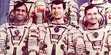 ![]() Rakesh Sharma, Yury Malyshev and Gennadi Strekalov. Soyuz programme (Crewed missions) | |