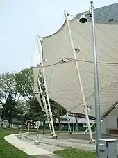 In July 2009, the police installed closed circuit television (CCTV) cameras for "safety and security". The police said that the cameras complemented the presence of their officers on the ground and did not record audio inputs. The move drew some negative reactions from the public. Former Nominated Member of Parliament Siew Kum Hong felt that the installation of CCTV cameras was "pretty ridiculous", and wondered if the move might feed the perception in some quarters that Singapore is a police state, since Speakers' Corner is "the one place in Singapore" where people can demonstrate.[72] Nevertheless, the surveillance cameras have not affected various events from being held. With effect from 1 December 2009, the size of Speakers' Corner was reduced so that it only occupies the half of Hong Lim Park nearer New Bridge Road.[73] From 1 March 2012, Speakers' Corner was expanded to include an area behind Kreta Ayer NPP, near the junction of North Canal Road and South Bridge Road.[74]