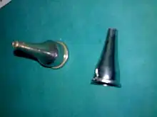 A speculum (Latin for 'mirror'; pl.: specula or speculums) is a medical tool for investigating body orifices, with a form dependent on the orifice for which it is designed. In old texts, the speculum may also be referred to as a diopter or dioptra.[1] Like an endoscope, a speculum allows a view inside the body; endoscopes, however, tend to have optics while a speculum is intended for direct vision.