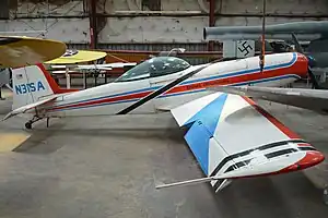 The Akromaster is a single-seat, low-wing, monoplane with conventional landing gear and a symmetrical airfoil. It features inverted fuel and oil systems and an air show smoke system.[3][4]