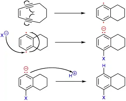 - 1 2 Perrin, Charles L.; Rodgers, Betsy L.; O'Connor, Joseph M. (2007). "Nucleophilic Addition to a p-Benzyne Derived from an Enediyne: A New Mechanism for Halide Incorporation into Biomolecules". Journal of the American Chemical Society. 129 (15): 4795–4799. doi:10.1021/ja070023e. PMID 17378569.