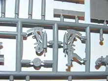 Many scale-model kits are made from injection-molded plastic. Hobbyists typically remove the parts of a model kit from the runner using a sharp craft knife or razor saw. The sprues usually form a rectangle with the runners and parts inside which makes them easier to box.