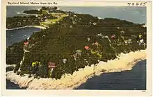 Squirrel Island is an island in the Gulf of Maine and village within the town of Southport, Maine, United States. It was established as a summer community in 1871. The origin of the name is not related to its squirrel population, since according to island chronicler Charles McLane "[s]quirrels do not inhabit the island (or if they do now, they did not in early times according to local pundits),"[1] but, rather, refers to the shape of the island which, when seen from above, resembles a squirrel holding an acorn.