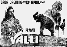 Sri Valli is a 1945 Tamil-language film co-directed by A. V. Meiyappan and produced by him under Pragathi Studios. It was co-directed by A. T. Krishnaswamy who also wrote the script. The film stars T. R. Mahalingam and Kumari Rukmani. Sri Valli revolves around the romance between Muruga and Valli, a tribal girl. The rest of the story shows how Valli wins the heart of Murugan.
