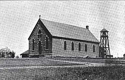 The first St. Ann's Church was financed by three parishioners who signed a note for $3,000.[3] The church was built of brick on the site now occupied by the Heisey Center. The first resident pastor was Father Dols, who was also responsible for parishes in Cascade, Choteau, and Neihart.