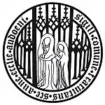 St Audoen's parish was once the wealthiest within the city and the church was for hundreds of years frequented on State occasions by the Lord Mayor and Corporation.[4] In its heyday, the church was closely connected with the Guilds of the city and "was accounted the best in Dublin for the greater number of Aldermen and Worships of the city living in the Parish" (Richard Stanihurst, 1568). The Tanners' Guild was located in the tower and the Bakers' Guild (Saint Anne's Guild) in a "college" adjoining the church.[7]