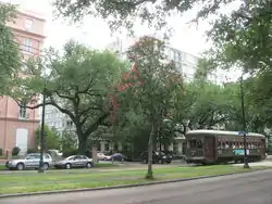 St. Charles Avenue (French: avenue Saint-Charles) is a thoroughfare in New Orleans, Louisiana, U.S. and the route of the St. Charles Streetcar Line. It is also famous for the dozens of mansions that adorn the tree-lined boulevard for much of the uptown section of the boulevard. It is named for St. Charles Borromeo, patron saint of Charles III of Spain, the monarch when France transferred the then-vast territory of Louisiana to Spain at the conclusion of the Seven Years' War in 1763.[1]
