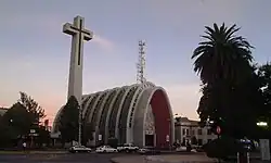 The St. Bartholomew Cathedral[1] (Spanish: Catedral de San Bartolomé) Also Chillán Cathedral[2] Is a temple of the Catholic Church, home of the Diocese of Chillán located in the center of the city of Chillán, Chile[3] in front of the Plaza de Armas, in the corner of streets Arauco and Libertad. It is also a symbol and icon of the city, as a result of the city's progress after the Chillan earthquake of 1939. It was declared a National Monument in December 2014.