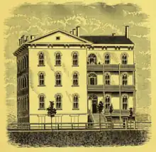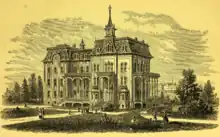 St. Mary's School was an American parochial girls' school located in Knoxville, Illinois. It opened in April 1868, in the building of the Ewing Female University, erected about ten years before. For lack of endowment, that institution had been compelled to discontinue its work, and the property was transferred to the Episcopal diocese of Illinois.[1] Of the fifteen trustees, ten were appointed to represent the diocese of Illinois and five to represent Knox county. The Rev. Charles Wesley Leffingwell became the founder and rector of St. Mary's, Mrs. Leffingwell being the matron and Miss Nancy Menedy Hitchcock the vice-principal. Dr. Leffingwell continued for 52 years as rector of the school; Mrs. Leffingwell was matron for 40 years; Miss Hitchcock was vice-principal for over 25 years.[2] This institution was entirely rebuilt and refurnished in 1883, at a cost of over US$100,000. Chapel, cloister, and other improvements were added.[3]