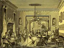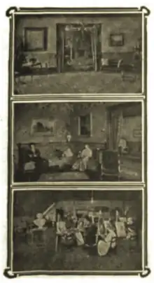 Many of the rooms were elaborately furnished. Among those more particularly noticeable were the Rector's studio (which alone cost US$1,200 to fit up), the reception parlor, the art studio, library and study hall. These were adorned with many rare works of art, among the principal of which were, a copy of Bartolomé Esteban Murillo's Madonna and Child of the Napkin, from the Pitti Palace, Florence, Italy (this copy was the size of the original, and was encased in a richly-carved Florentine frame); a copy of Correggio's Mystic Marriage of Saint Catherine, from Naples; a portrait of James Knox, copied from George Peter Alexander Healy; copies of Fra Angelico on gold; pen drawing of George Washington by Dr. Leffingwell; and a copy of Raphael's St. Cecilia. Other rare works of art also grace the walls, almost all of which were procured by Dr. Leffingwell while in Europe.[1]
