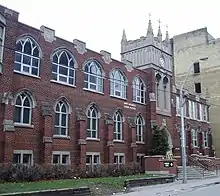 St. Michael's Choir School is located next to St. Michael's Cathedral Basilica and operates out of four buildings at 56, 66, 67 and 69 Bond Street. In 2016, the school's secondary school building, located at 69 Bond Street, was rated as in need of "critical" repairs and had the worst-performing score among Toronto Catholic District School Board secondary schools on the Ontario Ministry of Education's Facility Condition Index.[102] In 2018, the Ministry of Education announced it would spend $11.2 million CAD[103][104][105] to construct a new consolidated school building at 67 Bond Street designed by KPMB Architects.[106][107][108] In 2022, KPMB Architects, the Archdiocese of Toronto, and the Toronto Catholic District School Board submitted a new development plan to the City of Toronto for a revised six-storey school design that incorporates and restores the historic Gothic revival-style façade at 66 Bond Street.[109][110]