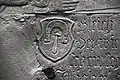 Two portals provide access to the building, one from the west and one from the south. The tympanum of the west portal portrays a knight, armed with sword and shield, battling a dragon. The head of a man, whom the dragon has swallowed, is visible between its jaws. The representation may allude to the words of Psalm 35/34: