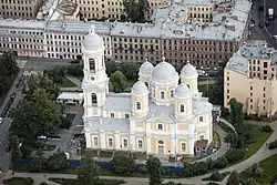 59°57′06″N 30°17′43″E / 59.9518°N 30.2954°E The Prince St. Vladimir's Cathedral (Russian: Князь-Владимирский Собор), formally the Cathedral of St. Equal to the Apostles Prince Vladimir (собор Святого равноапостольного князя Владимира) is a Russian Orthodox cathedral in Saint Petersburg, Russia. It is located on Blokhin Street in the Petrogradsky District of the city across the Malaya Neva from the Spit of Vasilevsky Island, in close proximity to the Sportivnaya metro station.