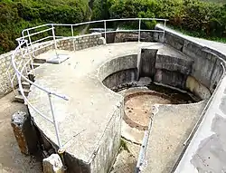 Following the dissolution of coast artillery in the United Kingdom in 1956, the battery's two gun emplacements were infilled with rubble and earth, while the site was acquired by the National Trust in 1959. In 2012, the eastern gun emplacement was excavated and restored as part of the "Unlocking our Coastal Heritage" project, which aimed to "increase the economic value of the South West Coast Path by protecting and enhancing heritage features".[4][5] The battery is accessible to the public, while tours are carried out during the peak season by the National Trust.[6]