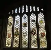The church had much stained glass in 1622 that disappeared during the Reformation. The current eleven coloured glass windows on the north, west and south sides of the church were erected in 1879 by Lavers, Barraud and Westlake, each being named for its donor; the scenes depicted tell the Life of Christ from the Annunciation to the Last Supper.[6][21] The stained glass in the chancel and the Hasting Chapel was erected in 1924, and most was once in the castle;[22] the earliest glass is a German, Swiss and Flemish work possibly originally from Farleigh Hungerford.[18] The chancel's east window contains arms of Richard I and Edward I and the south window includes "The Magi bearing gifts" and the arms of Catherine Parr. The Hastings Chapel south window has several panels from the 15th and 16th centuries, and one which could possibly be as old as the 13th century. The chapel's east window also has some high quality work, including "The Last Supper". The large west window in the tower is plain glass, as is the clerestory.[22]