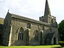 The church dates to 1220 but the nave walls contain evidence that there was an earlier building dating from c1100.[4] It consists of a tower with spire, nave, chancel and north aisle.[5][3]