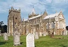 The parish church of St Mary's has been referred to as "a miniature Exeter Cathedral". Like the cathedral it is cruciform in plan, with transepts formed by towers[3]