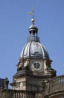 St Philip's Church was planned when the nearby medieval church of St Martin in the Bull Ring became insufficient to house its congregation because of the growing population of Birmingham. The land, previously named the Barley Close, was donated by Robert Philips in 1710. It is one of the highest points in the district and is said to be at the same level as the cross on St Paul's Cathedral in London.[1] Following an Act of Parliament, construction commenced in 1711, to the design of Thomas Archer,[2] and was ready for consecration in 1715, when it was dedicated to the Apostle Philip as a tribute to the benefactor Robert Philips. It appears to have been Archer's first church, apart from a rebuilt chancel at Chicheley attributed to him. Construction was estimated to cost £20,000, but the final figure was only £5,012.[2] (equivalent to £830,000 in 2021).[3] This was because many of the materials were donated and transported to the site at no cost. St Philip's served as a Parish church from 1715 to 1905.