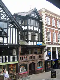 The building originated somewhere between about 1180 and about 1280. Alterations were made in the 16th or 17th century and it was largely rebuilt above the Row level in the late 19th century and altered again in the 20th century. The building is in four storeys. It is built in sandstone at the street (undercroft) and Row levels and above this is timber-framed. The undercroft has 5½ bays and it is considered that the walls date from the late 12th century, and are therefore the earliest features yet to have been dated in the structure of the Rows.[1]