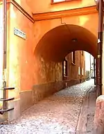 Interior of the blind alley facing Köpmangatan.