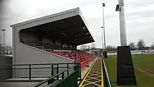 From the formation of the club in 1896 until the end of 2014 the club played on Hanson's Field in Kettering Road, St Martins.[8] When the Burghley Estate, owners of the land, decided to redevelop that site for housing a new stadium was built in conjunction with the nascent Sports Institute of New College, Stamford[9] at Borderville on Ryhall Road, to the north of town.[10][11] The stadium has a terrace behind one of the goals as well as an all-seated stand along one side of the pitch with room for 300 spectators.