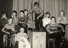 Following pilot shows in Reading and Ramsgate, Stanley Dale's National Skiffle Contest tour began in Nottingham in September 1957.[12][13] Initially, no date was set for the final of the contest, which music journalist Pete Frame has described as an "interminable, enervating slog around the country".[3] It was highly successful, with Stanley Dale noting that "it is not only boys who make these groups, there are a great number of girls joining in".[5] Publicity for the shows promised a "major film in active preparation" and "the best groups to be included on a Parlophone long play record for release in April", neither of which ultimately materialised.[2] In January 1958, it was announced that the contest's final rounds would be broadcast on television in editions of the BBC's teen-oriented music programme Six-Five Special.[1] Stanley Dale had negotiated a deal with the show's producer Jack Good, to the dismay of co-producer Dennis Main Wilson, who disliked skiffle and considered the contest "phoney".[14][15][16][nb 2]