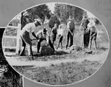 The site chosen was rough and rocky: the main park area (sub 22 now lot 33) fronted Lock Street with two smaller allotments (subs 5 and 6 now lots 16 and 17) fronting White Street.[4] In 1923, the memorial site was formally acquired by the Committee, being held in the names of Charles Frederick White, James Vincent Scully, and Harry Wright. In September of that year, Dornbusch and Connolly were asked to prepare specifications in both local stone and concrete and tenders were to be called. Apparently due to lack of funds work on the rest house did not in fact commence until 1925. The memorial site was however already marked as such: a Turkish gun believed to have been brought to Australia as a war trophy by the commander of the Light Horse, Sir Harry Chauvel and his brother, Major Alan Chauvel (whose family summer house, "El Arish", adjoined the memorial site) was placed at what became the Lock Street entrance to the memorial. This entrance was also to be marked by a sign, a fence, and a stile.[3]