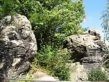 During the German invasion of Poland, which started World War II, the arms factory was evacuated eastwards on September 6, 1939.[2] Later that same day, the suburb of Wanacja (present-day district of Starachowice) was the site of a battle between German and Polish troops, after which German troops committed a massacre of over 20 Polish civilians.[2] On September 7, German troops entered Starachowice.[2] On September 27, 1939, the Einsatzgruppe II entered the city to commit various crimes against Poles.[3] Afterwards it was occupied by Germany and in 1940 the Germans carried out mass arrests of local Polish intelligentsia.[4] Poles were used as forced labour in the local factory.[1] During the Holocaust, the ghetto in Wierzbnik was liquidated on October 27, 1942, and many of its prisoners were sent to the death camp Treblinka. The remaining Jewish residents of Starachowice and Wierzbnik were sent to German labor camps in the vicinity. Those camps were liquidated in the summer of 1944. The remaining survivors were deported to Auschwitz where many were murdered by the Schutzstaffel. There was a munition plant there where Jewish slave labor was used. In 1944, during and following the Warsaw Uprising, the Germans deported thousands of Varsovians from the Dulag 121 camp in Pruszków, where they were initially imprisoned, to Starachowice.[5] Those Poles were mainly old people, ill people and women with children.[5] 10,000 Poles expelled from Warsaw stayed in the town, as of 1 November 1944.[5]