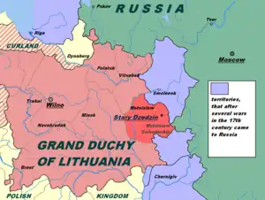 In the 12th-14th centuries this area belonged to the Principality of Smolensk, in the 14th century it became a part of the Grand Duchy of Lithuania, then was later included in the Mścisław Voivodeship. At the time of Muscovite-Lithuanian Wars it was situated near the new frontier and suffered from the wars of the next two centuries. In 1740–1744, Stary Dzyedzin probably was touched by the Krychaw peasant rebellion under Vasil Vashchyla.