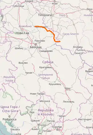 01808 11.452 km (7.116 mi) 134.422 km (83.526 mi) Bela Crkva – SerbiaRomania border (Kaluđerovo)