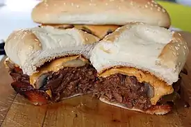 - ↑ "Philly Cheesesteak Burger". snappygourmet.com. Snappy Gourmet. 26 May 2016. Retrieved 17 February 2019.