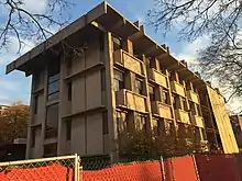 The firm designed several buildings for the University of Nebraska, Lincoln following WWII. In 1949, the Agronomy Building was to be redesigned. The then-head of the Department of Architecture, Linus Burr Smith drew up original plans and stated that only four firms in Nebraska were capable of completing the design. Steele, Sandham, and Steele were chosen. The Agronomy Building was considered to be sophisticated and elegant at the time it was constructed, with state-of-the-art laboratories and modern amenities. The building was renamed for a long time department chair, Franklin D Keim, in 1957 who had retired in 1952 after the building's completion.[7] The firm was renamed Steele, Sandham, and Weinstein following the death of William Steele Sr. and the partnering of Alex Weinstein. They designed Behlen Laboratory under this name in 1962. Behlen Laboratory was one of the few brutalist buildings built in Nebraska.[8]