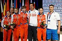Cerioni with the Russian team at the 2014 European Fencing Championships